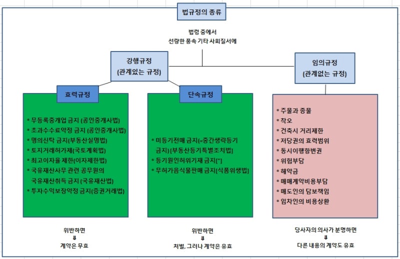 즉, 충분한 상호 합의를 통해 법령의 내용을 변경하여 계약을 체결한 경우라도 그 내용이 임차인에게 불리한 경우에는 임차인은 해당 계약이 무효라고 주장할 수 있습니다. 임의조항 강제조항 의미 당사자의 의사에 따라 변경될 수 있는 법률행위를 임의규제라 하고, 당사자의 의사와 관계없이 강제적으로 적용되는 것을 강행규제라 한다. 문제는 주택임대차보호법이 자율규제가 아닌 강제규제라는 점이다. 따라서 당사자 간 합의에 의해 법률에 규정된 내용이 변경된 경우에는 임대인은 무조건 그 내용을 준수해야 하지만, 임차인은 효력이 없다고 주장할 수 있습니다.